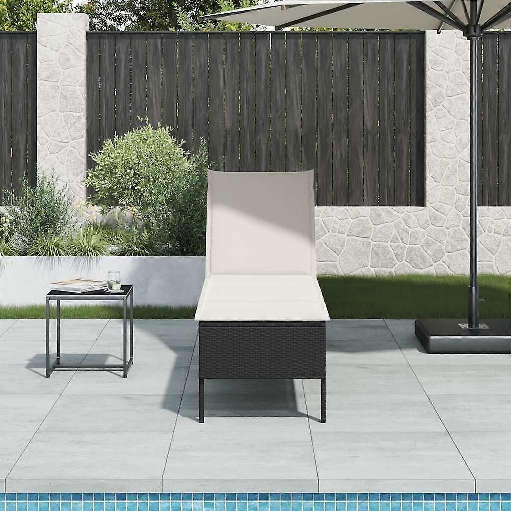 Sonnenliege mit Auflage Schwarz 55x200x44 cm Poly Rattan