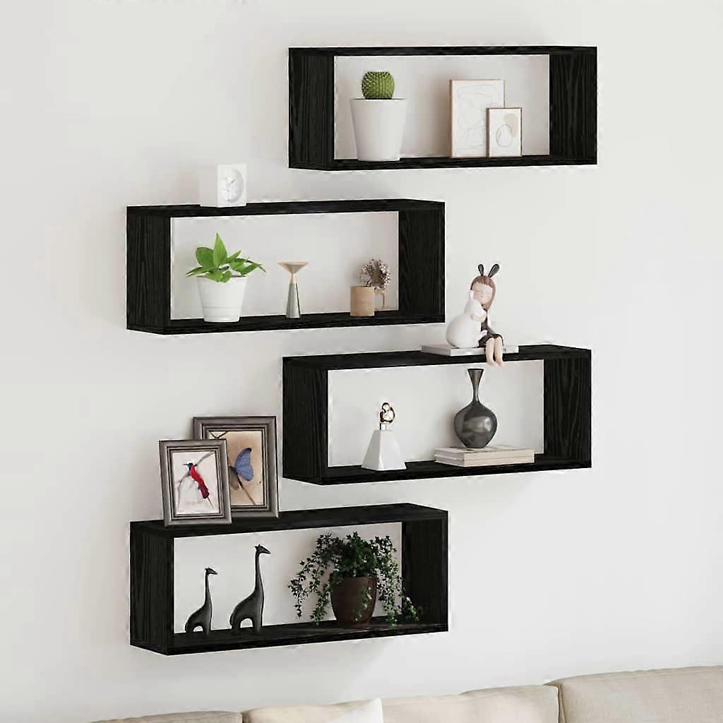 Wandregale mit Regal 4 pcs Schwarz Eichen-Optik 60 x 15 x 23 cm