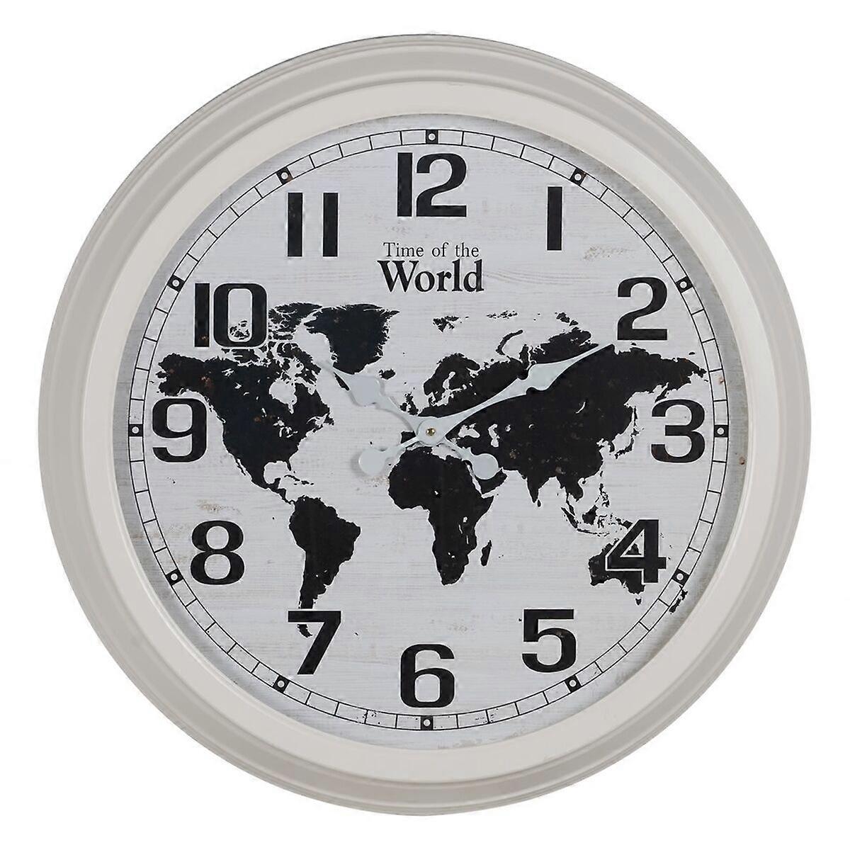 Wanduhr Weltkarte Weiß Schwarz Eisen 70 x 70 x 6,5 cm