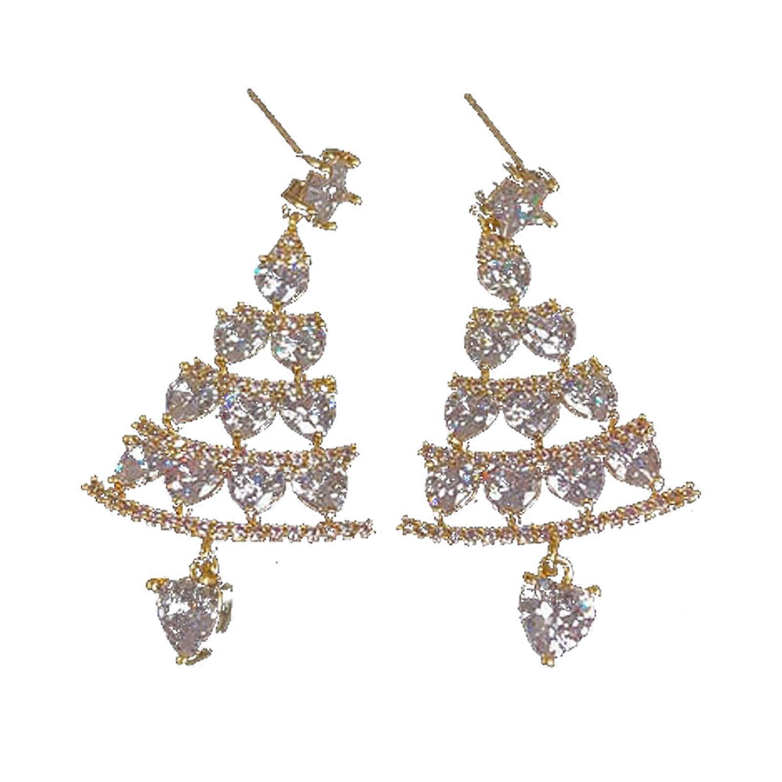 Christmas Tree Earrings, 1 Pair Crystal Shiny Zircon Christmas Tree Dangle Earrings for Women, Christmas Jewelry Gift for Women Girls