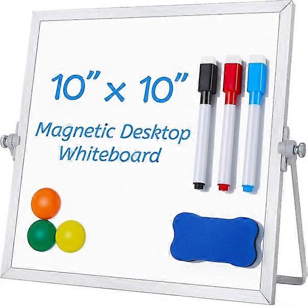 Small Desktop Dry Erase Board: 10"x10" Double-Sided Magnetic Whiteboard with Stand