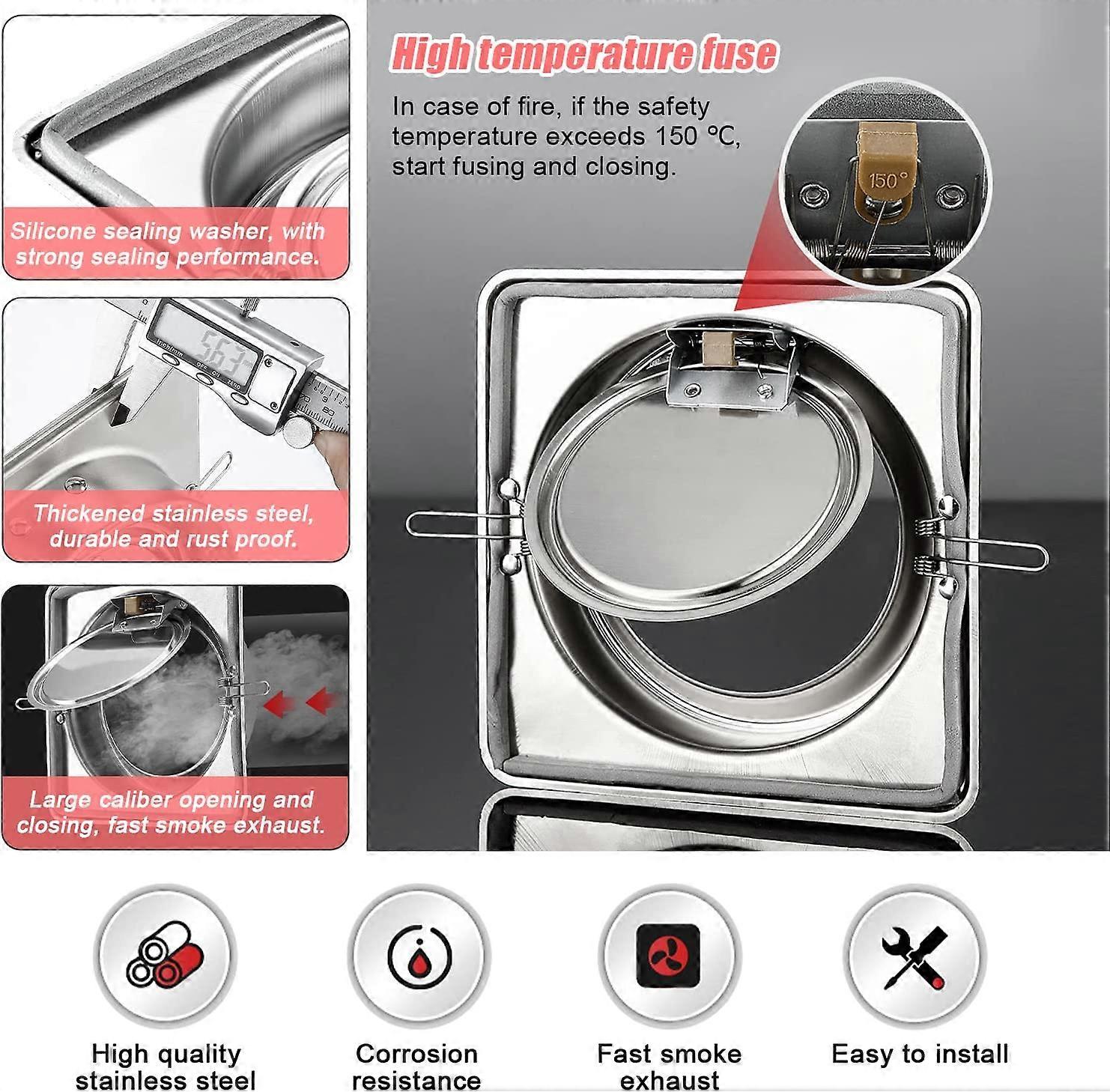 Function: Non-return valve opens and closes silently. 304 stainless steel Check Valve Hood can automatically open to ventilate the room when grease is released. It closes automatically when there is no more smoke. Good airtightness: Hood check valve contains silicone gaskets that completely fill the gaps. Fumes from common areas simply cannot penetrate, which protects the air in your room. The sealing is good and resists oil and aging. Material: Check valve is made of thickened stainless steel for durability. It is not easily deformed and resists rust and corrosion. Easy to install: Hood check valve can be installed without tools, with bare hands, saving time. Convenient and fast. Field of application: Check valve can be used for most ventilation ducts and is suitable for kitchen hoods, bathroom fans, exhaust fans, etc.