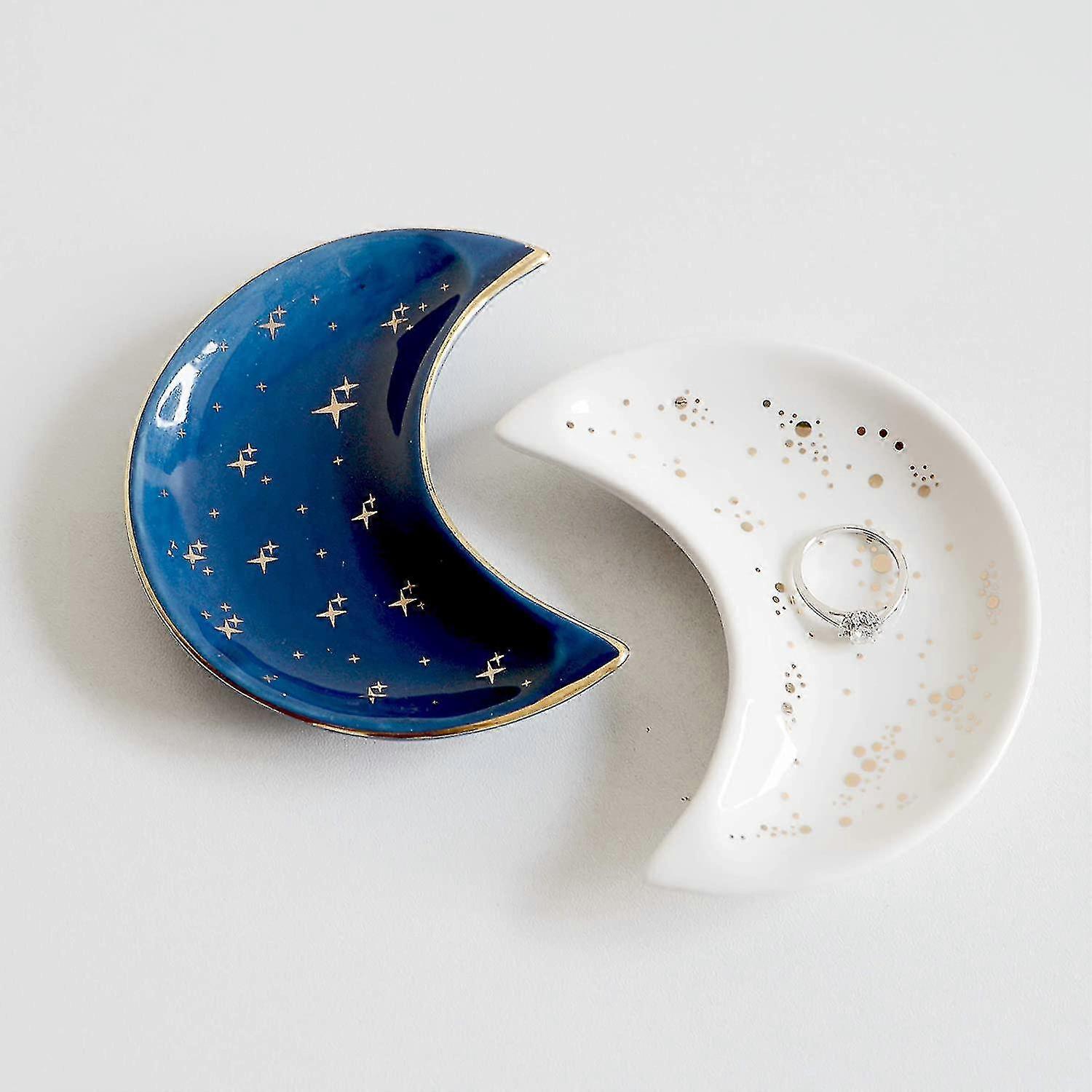 Small Moon Jewelry Dish Tray, Set Of 2, Decorative Ceramic Trinket Dish, Modern Accent Tray For Vanity