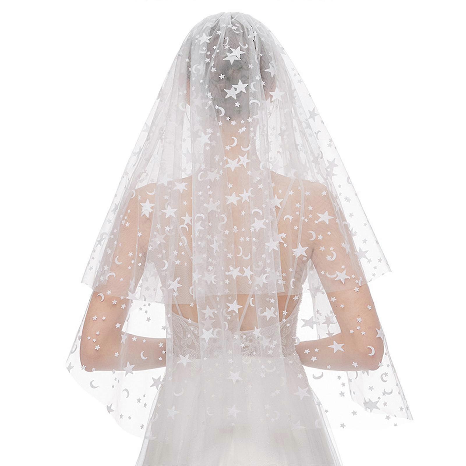 Bridal Veil Flocking Stars & Moons Decor Elbow Length Wedding Veils 2 Tiers