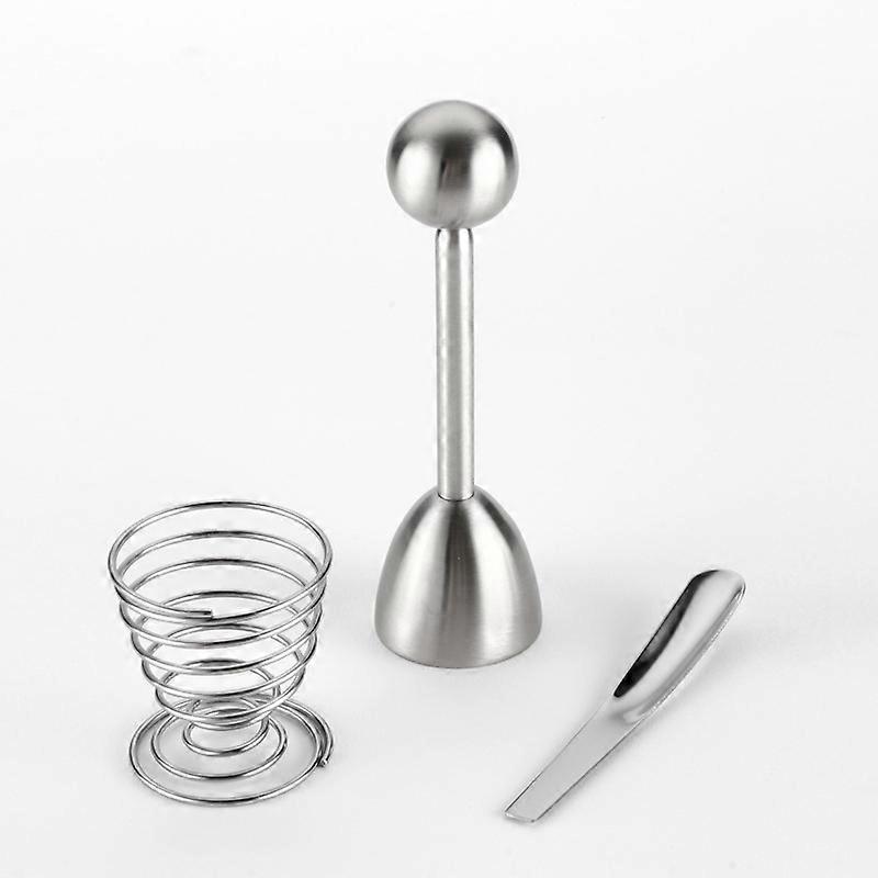 Egg opener eggshell cutter set, 304 stainless steel egg opener eggshell cutter stainless steel egg spoon spring egg cup for Raw/Soft/Hard Boiled Egg(B