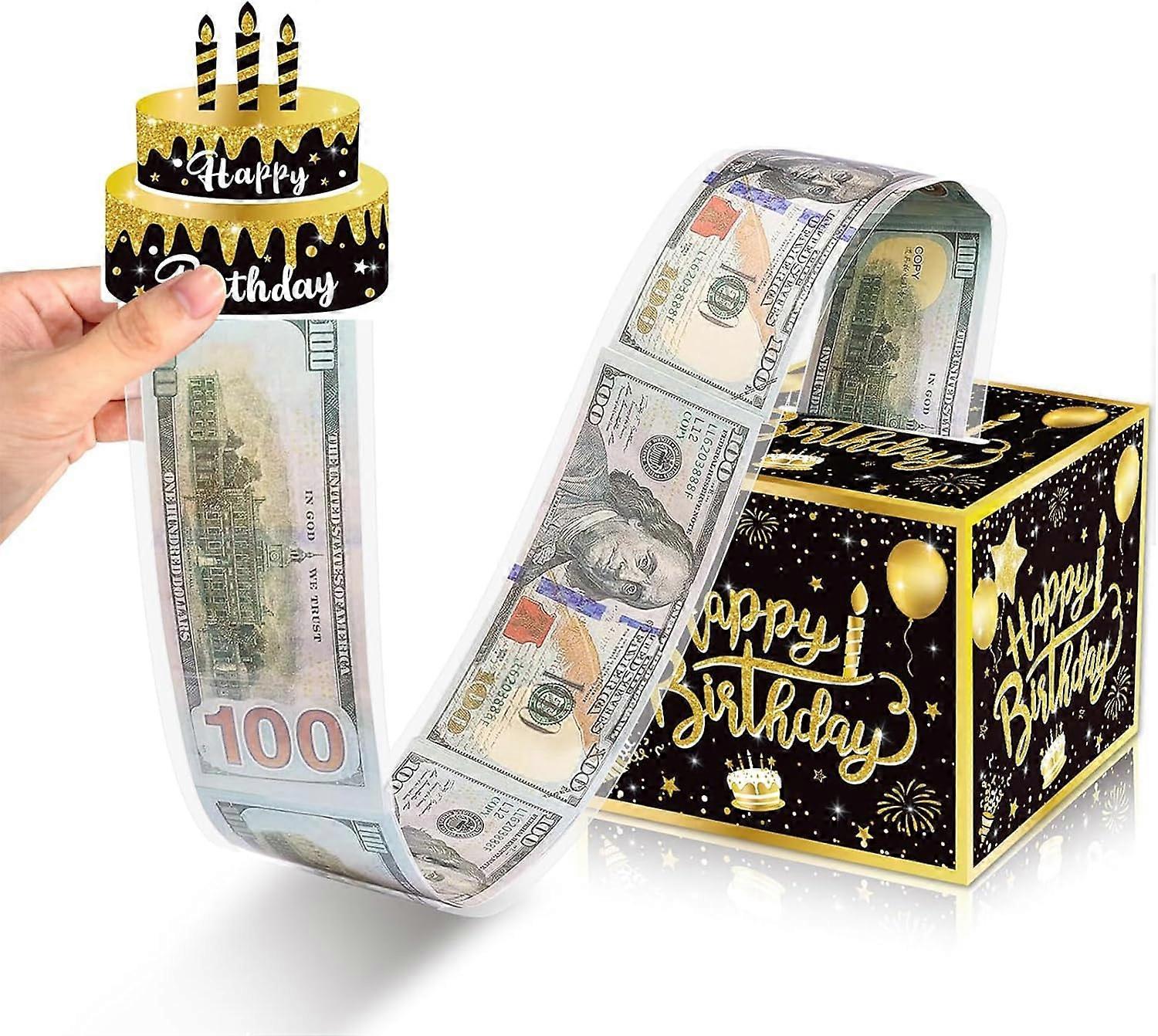 Birthday Money Box for Cash Gift Pull, Surprise Gifts Box for Cash, Money Holder with 30Pcs Transparent Bags (Birthday-Black Gold)