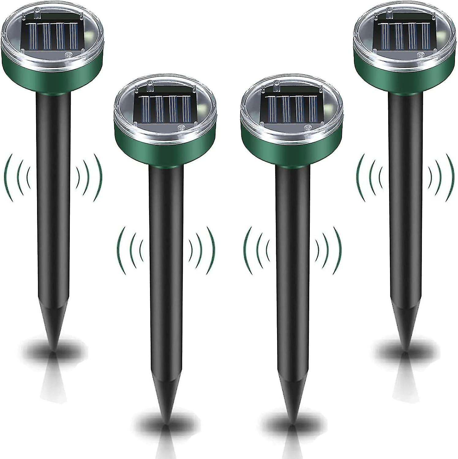 Solar Mole Repeller, 4 Pieces Ultrasonic Pest Repeller - Mole Control with IP65 Waterproof, Mole Repellent Garden Mole Repeller