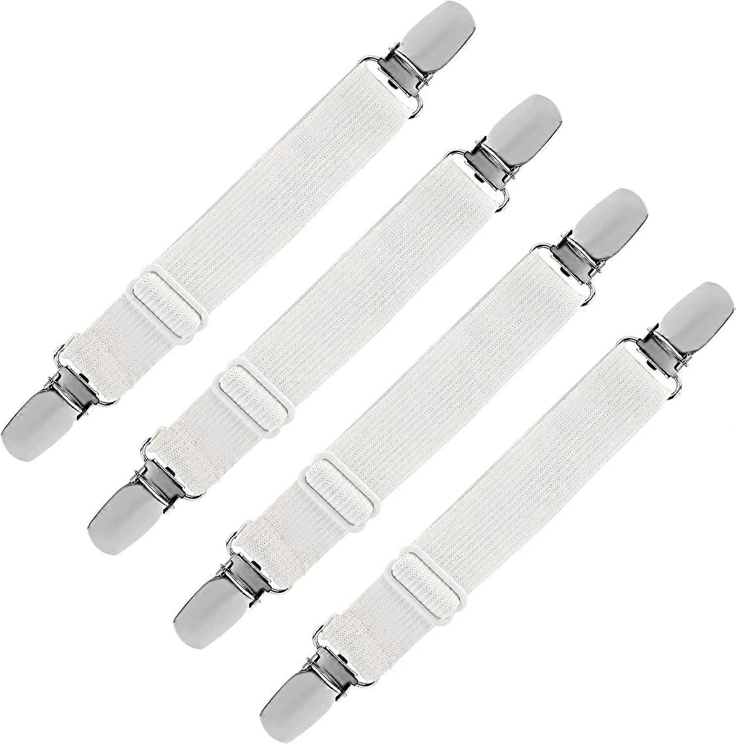 Elastic Fitted Sheet Stretcher, Adjustable Retainer Strap Fastener for Bed Sheet, Sofa, Ironing Cover (White, Pack of 4)