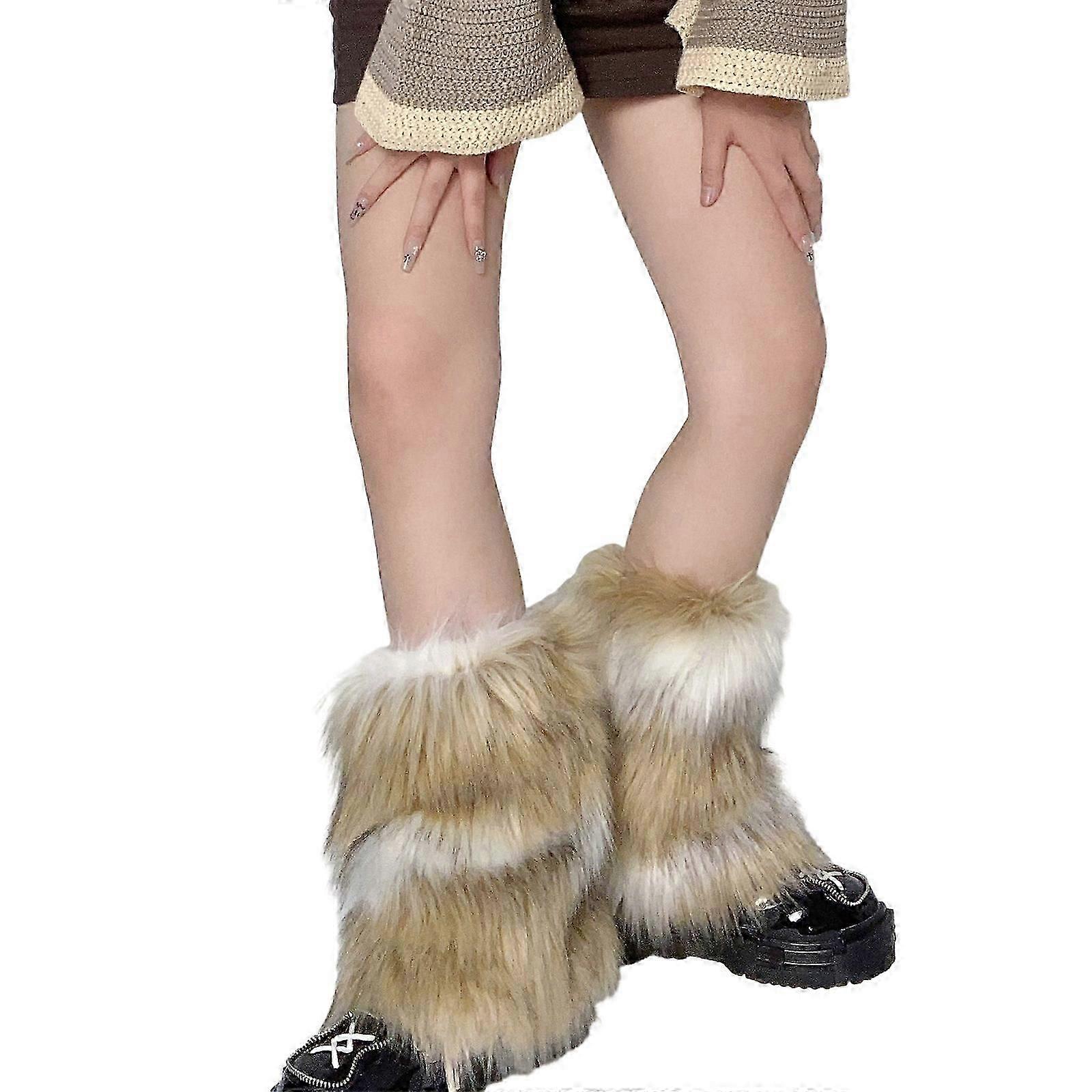 Womens Furry Party Costume Sexy Faux Furs Fuzzy Long Boots Shoes Cuffs Cover Leg Warmers/Boot Sleeves/Boot Covers Gifts Size 40
