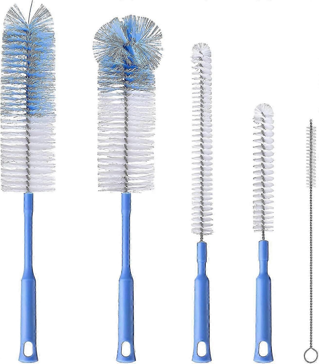 Multiple sizes: 5 pack bottle brushes include 15 x 2.5 sparse top brush for beer bottles, 14.7 x 2.5 dense top brush for water bottles, 14.5 x 1 long brush for narrow neck bottles, 11.5 x 1 short brush for lids and 10 x 0.2 cleaning brush for straws. Not easy to break: The bottle brush handles are much thicker and sturdier than others, so they are not easy to break off. Their ergonomic design provides a comfortable and easy grip for better handling. More durable and sturdy: The bottle cleaner brushes are made of nylon bristles, which are more durable than other PP material. The bristles are fixed with thicker stainless steel wires, which are not easy to bend. Excellent cleanliness: The 14.7 dense top brush adopts a technique of binding, the top bristles are more dense than others. It is suitable for wide bottle necks, as it can clean the bottom of the bottle easily. Multi-purpose: The 15 sparse top brush is suitable for beer bottles, narrow-mouth bottles, tumblers. The 14.7 dense top brush could clean the bottom of the bottle easily, so it is suitable for water bottles, sport bottles, thermos, jars, glasses, mugs, and more. The 14.5 long brush is suitable for narrow bottles, wine glasses, long neck bottles, etc. The 11.5 short brush is suitable for lids, caps, small bottles, spouts. The 10 cleaning brush is suitable for straws, glass pipes.