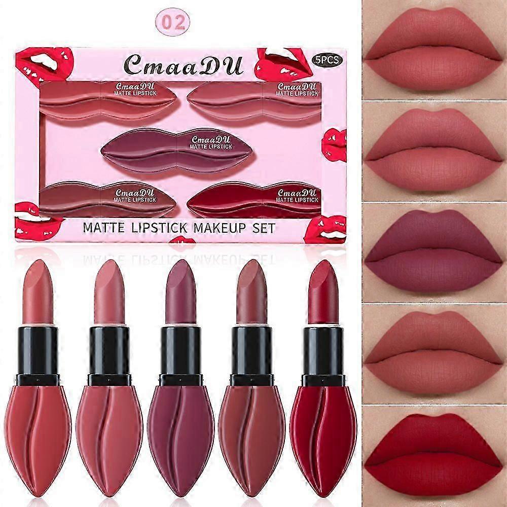 Matte Lipstick Makeup Set,5PCS Long Lasting Non-Stick Smudge Proof Lipstick,Highly Pigmented Shades Makeup Set,Velvet Texture Lip Gloss Smooth Lip Sta