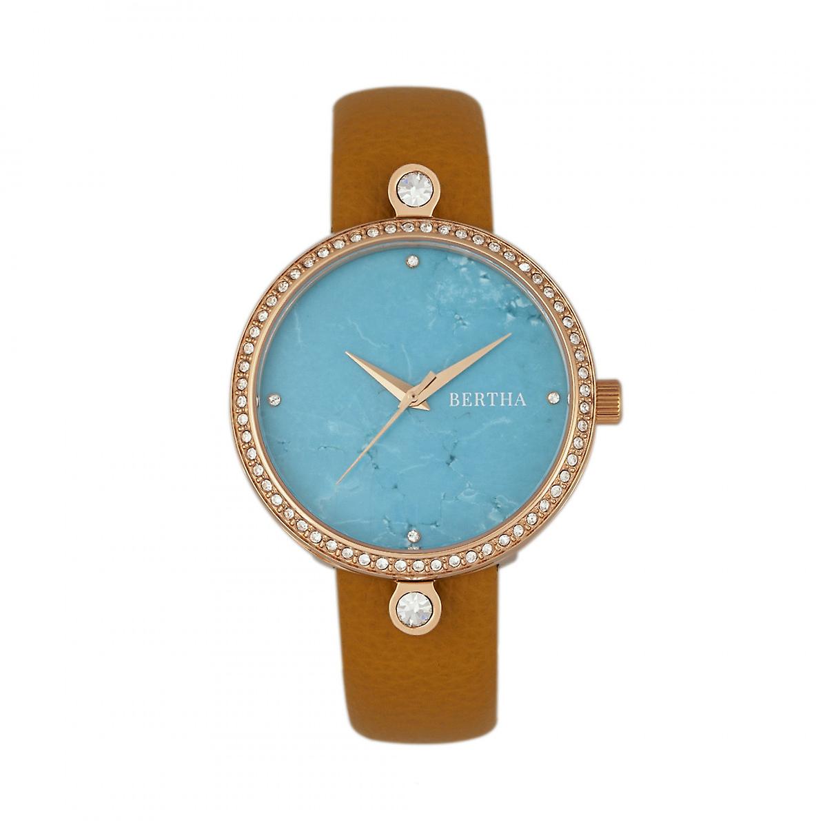 Bertha Frances Marble Dial Leather-Band Watch - Camel/Cerulean