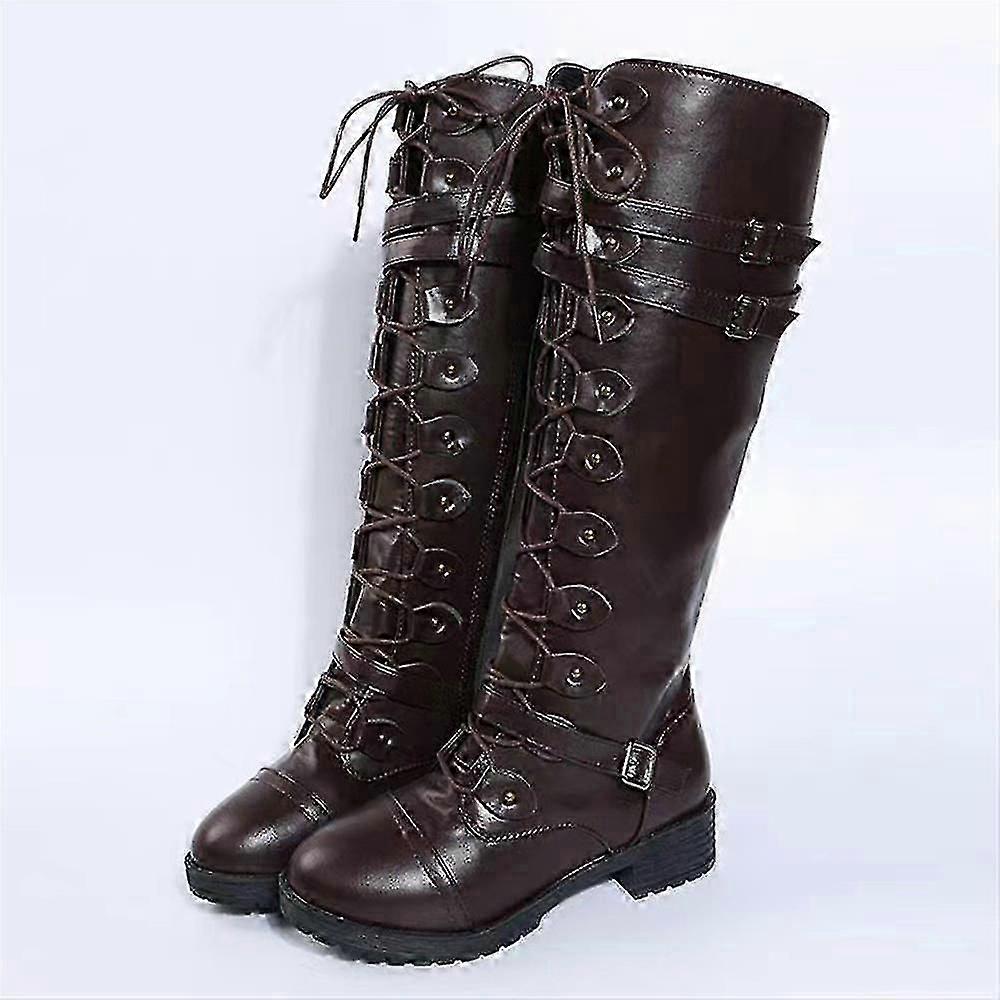 Women's Army Combat Biker Boots Warm Lace-up Zip Knee High Shoes