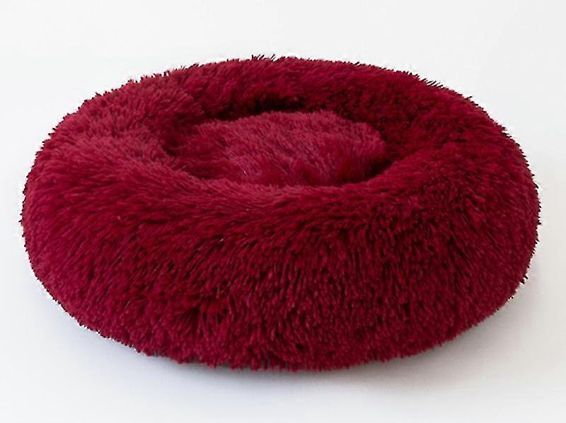 Round Pet Bed Cat Litter Dog Bed Round Plush Cat Bed, Wine Red-YUHAO
