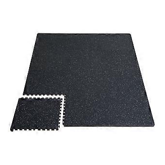 0.56 Inch Thick Gym Floor Mats, 12 Tiles Rubber Top with EVA Foam, 24" x 24" Workout Mats with 48 sq.ft Coverage, Black & White