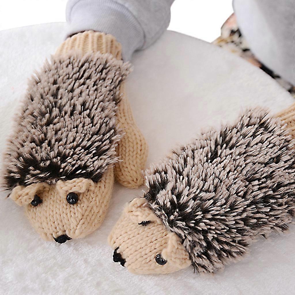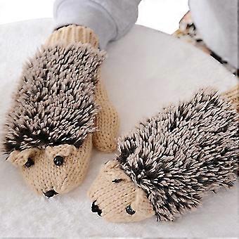 1Pair Women Girls Lovely Winter Warm Gloves Outdoor Snow Skiing Cute Cartoon Hedgehog Chunky Knitted Full Finger Mittens Beige