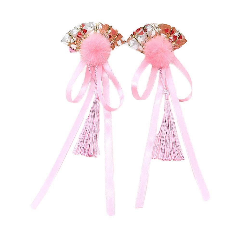 1Pair Chinese Style Kid Girl Pompom Fan Tassel Hairpins Hair Clips Accessories Qinhai