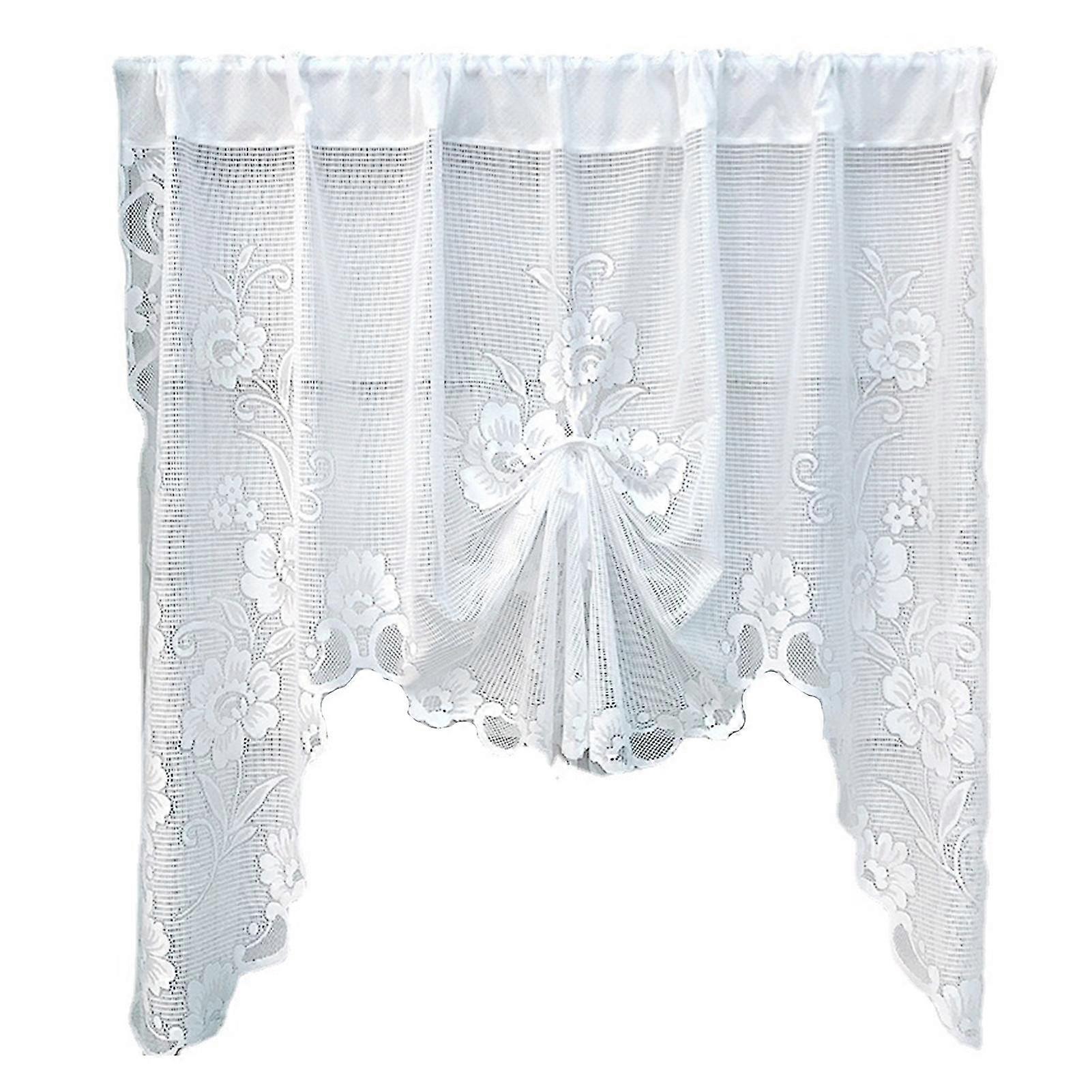 1 Panel Sheer Curtain Adjustable Flower Embroidery Polyester Floral Design Living Room Lace Tie Up Curtain For Daily Life