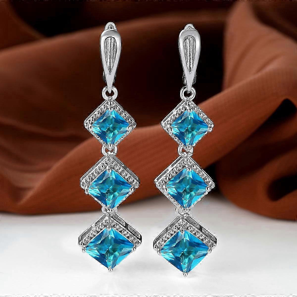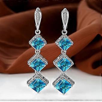 1 Pair Silver Yellow Rose Gold Color Black Stone Princess Cut Birthstone Drop Stud Earrings Bride Band Engagement Jewelry