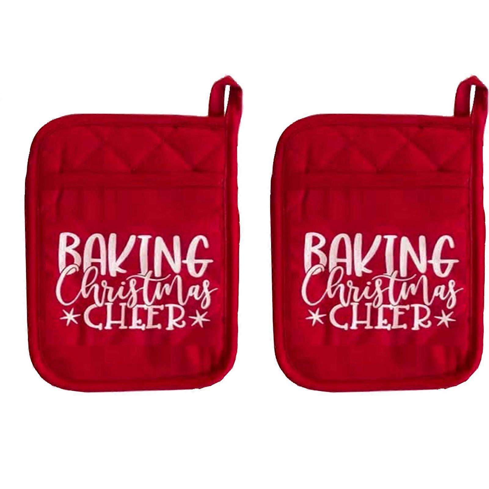 1 Pair Oven Mittens Christmas Style Thickened Ant-scalding Heat Insulated Hanging Hole Soft Oven Mitts Kitchen Cooking Baking Gift Oven Gloves