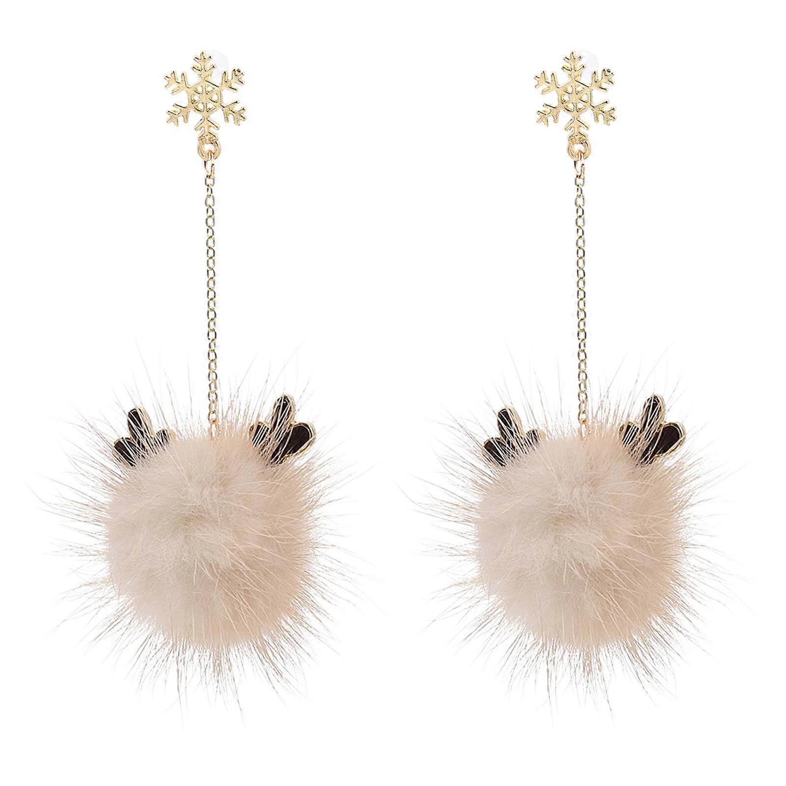 1 Pair Exquisite Xmas Plush Ball Earrings Creative Elk Horn Decor Earrings
