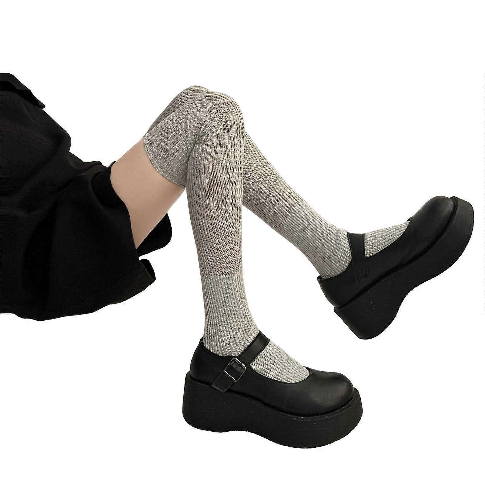 1 Pair Girls Ruffle Lolitas Socks Breathable Cute Long Stockings Sexy Cotton Womens Autumn Winter Warm Thigh High Socks silver gray
