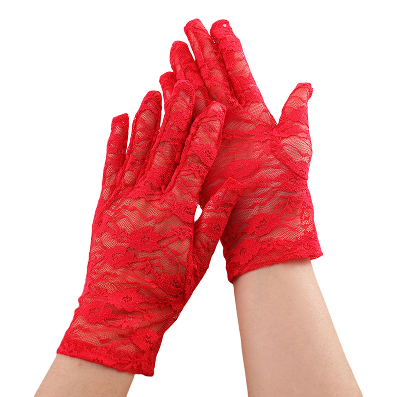 1 Pair Bridal Gloves Lace Flower Pattern Solid Color Lady Mittens Elegant Short Style Gloves for Wedding Party Prom