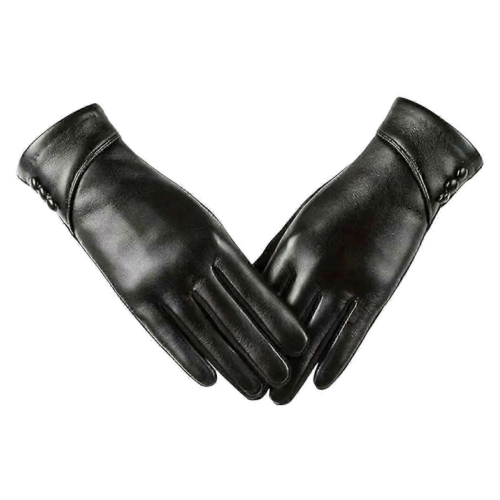 1 Pair Winter Cycling Gloves Cold-proof Plush-lined Touch Screen Windproof Faux Leather Solid Color Anti-slip Cold Weather Gloves for Outdoor Activiti