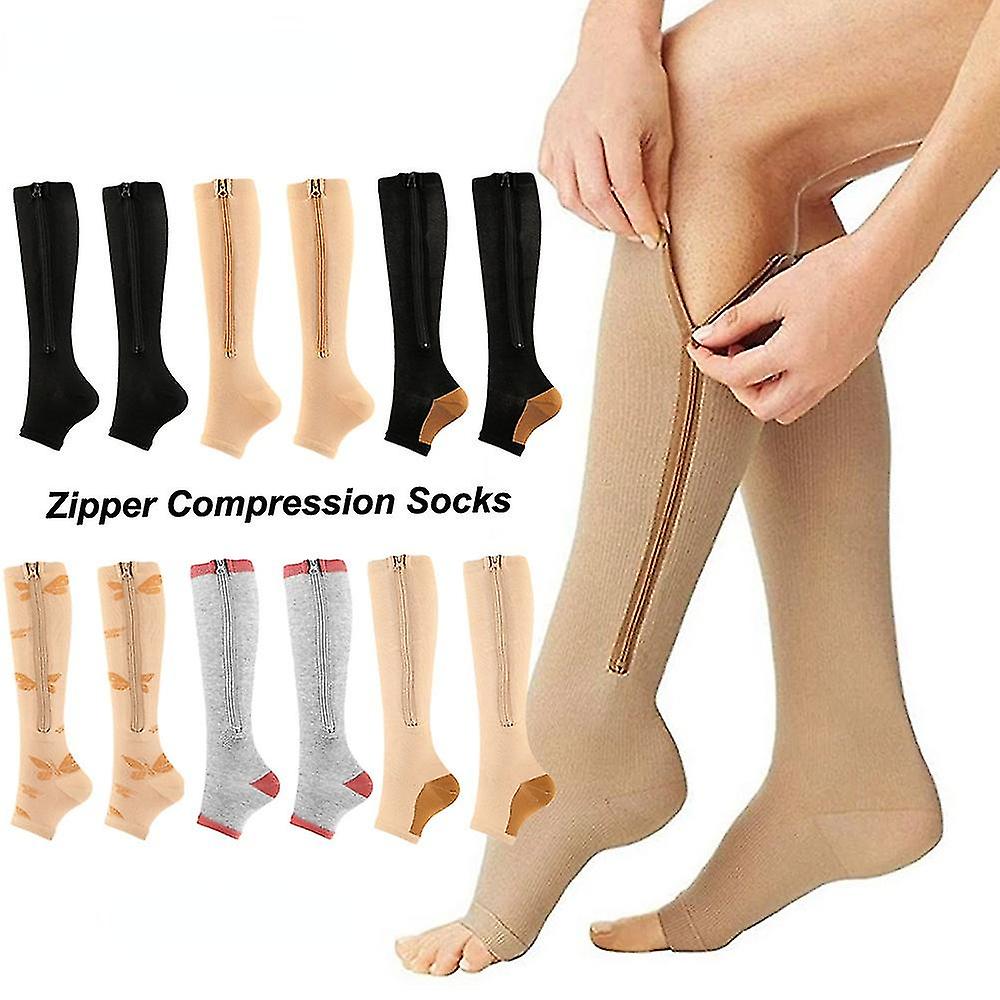 1 Pairs Zipper Compression Socks For Women Men, 15-20 Mmhg Open Toe Knee Support Socks For Varicose Vein Edema