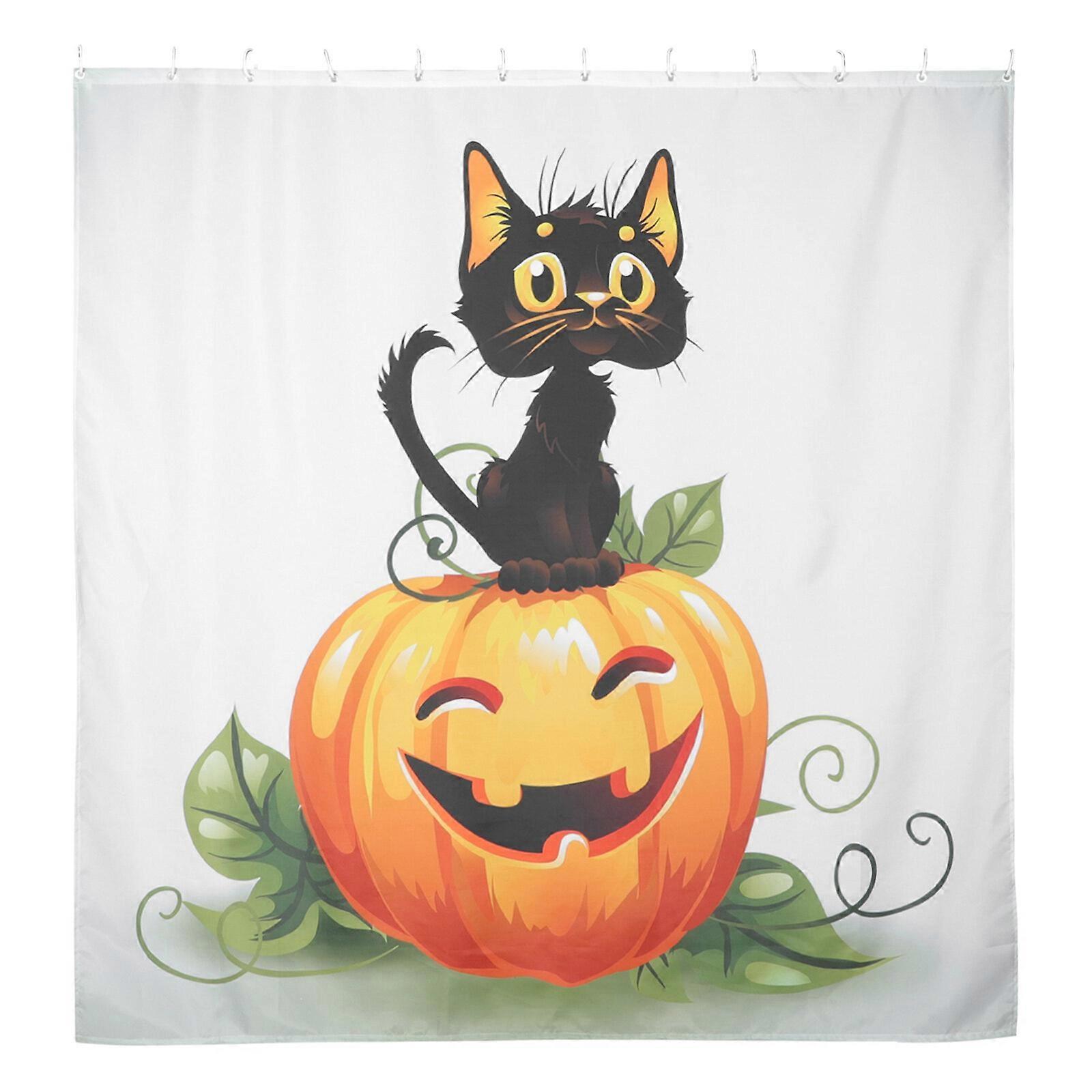1 Set of Waterproof Bath Curtain Kit Polyester Shower Curtain Pumpkin Pattern Bath Curtain