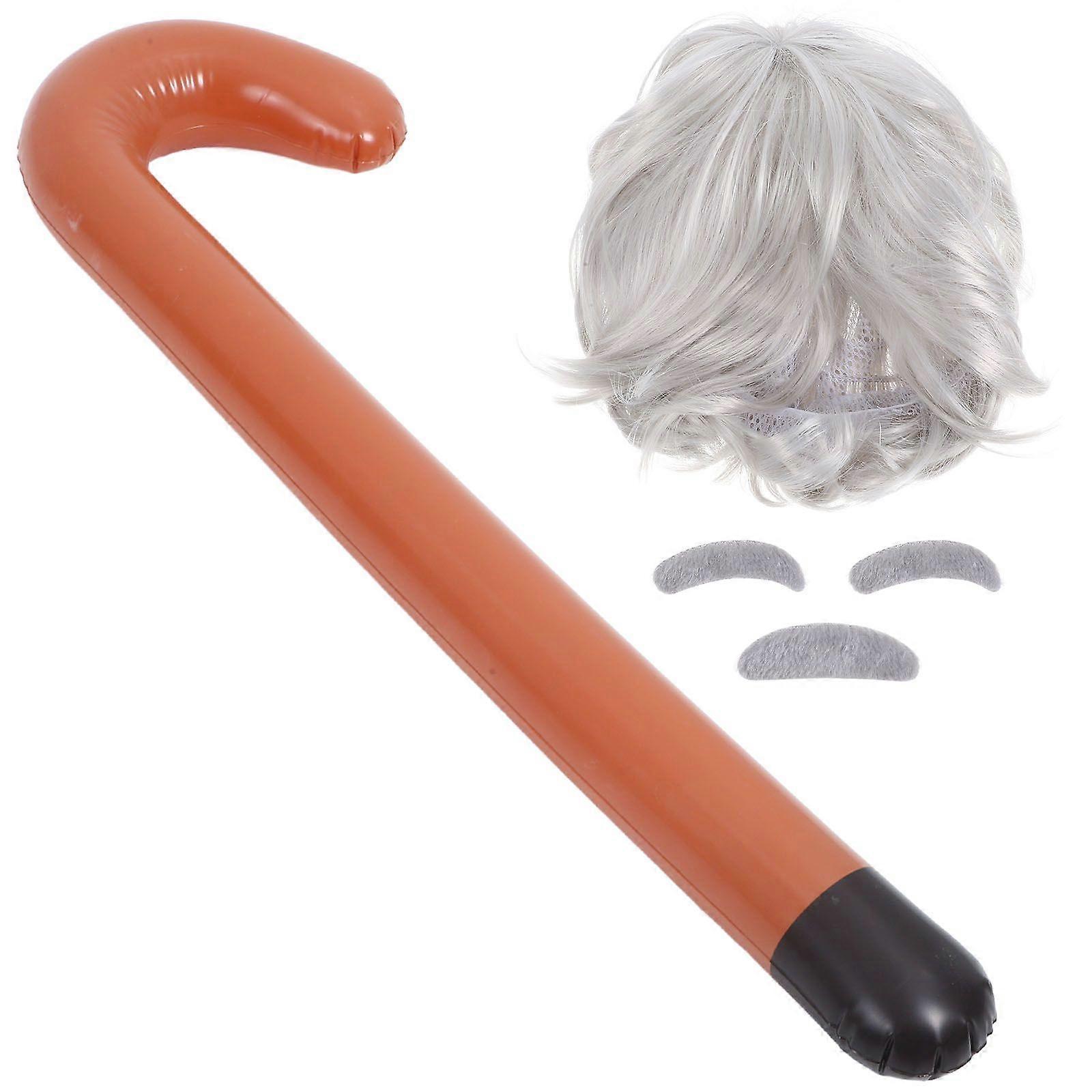 1 Set Halloween Cosplay Kit Cosplay Wig and Bread Halloween Cosplay Supply Old Professor Cosplay Kit