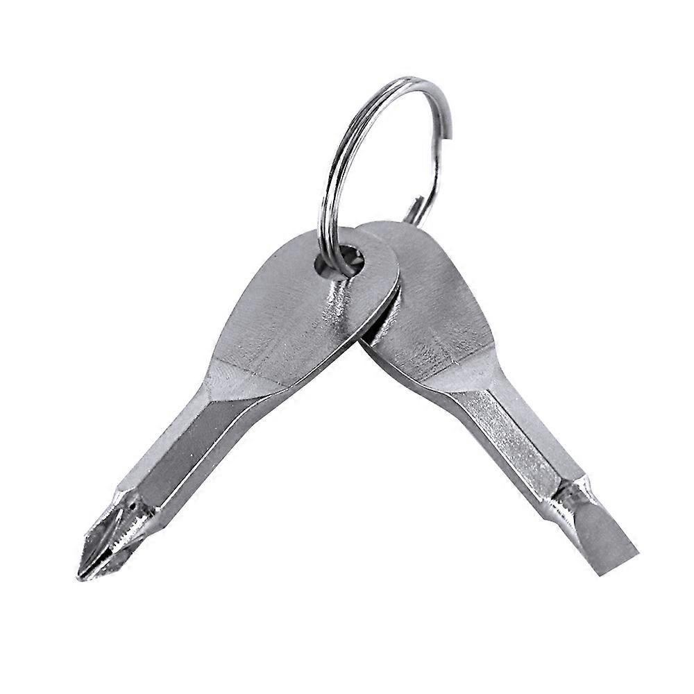 1 Set Stainless Steel Mini Edc Multifunction Screwdriver Key Shape Slotted Screwdrivers Keychain Pocket Repair Tool