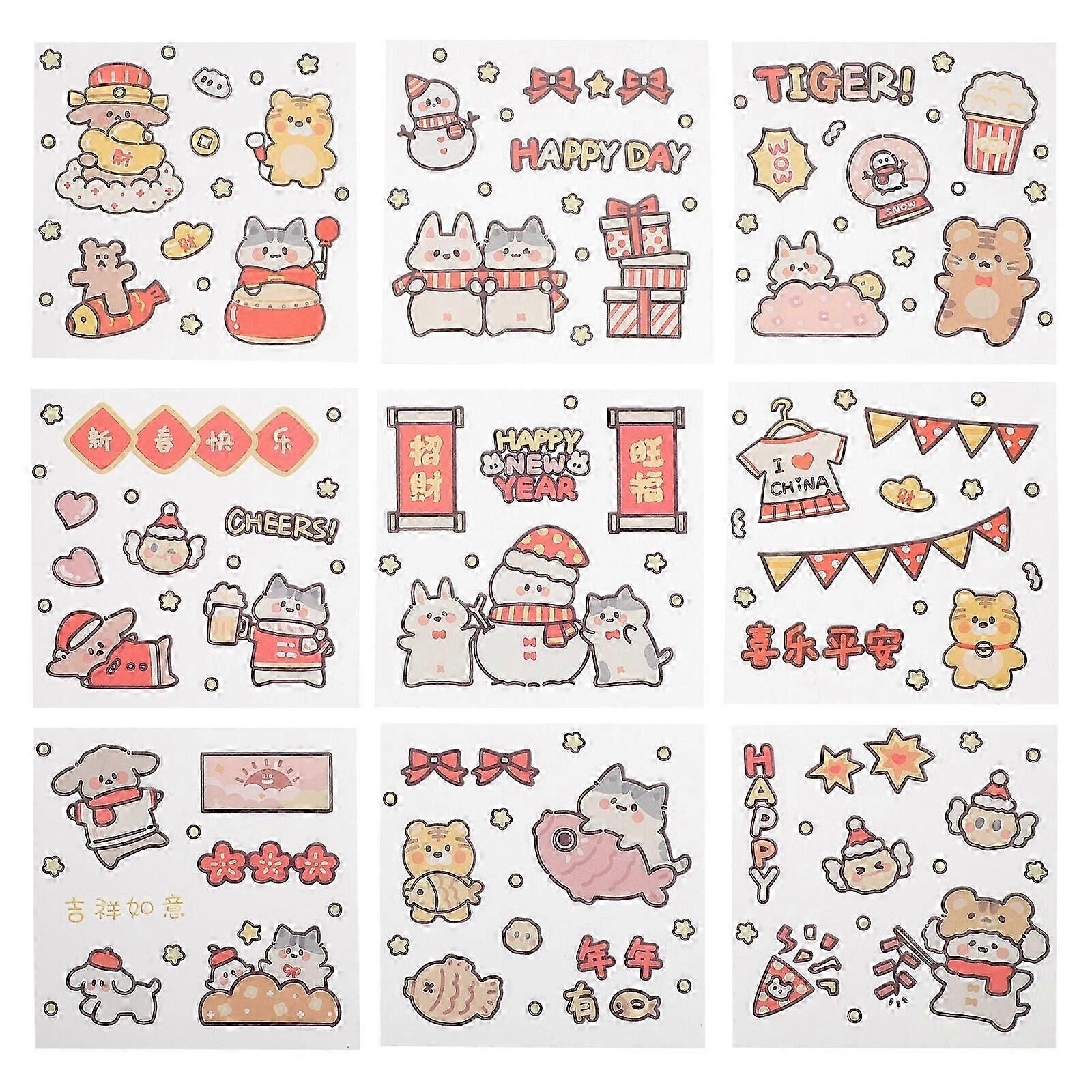 1 Set of PVC New Year Stickers Scrapbook Decorative Materials DIY Accessories