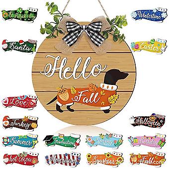 1 Set Welcome Sign Versatile Round Wooden Front Door Plate Pendant with Bow for Outdoor Porch Decora
