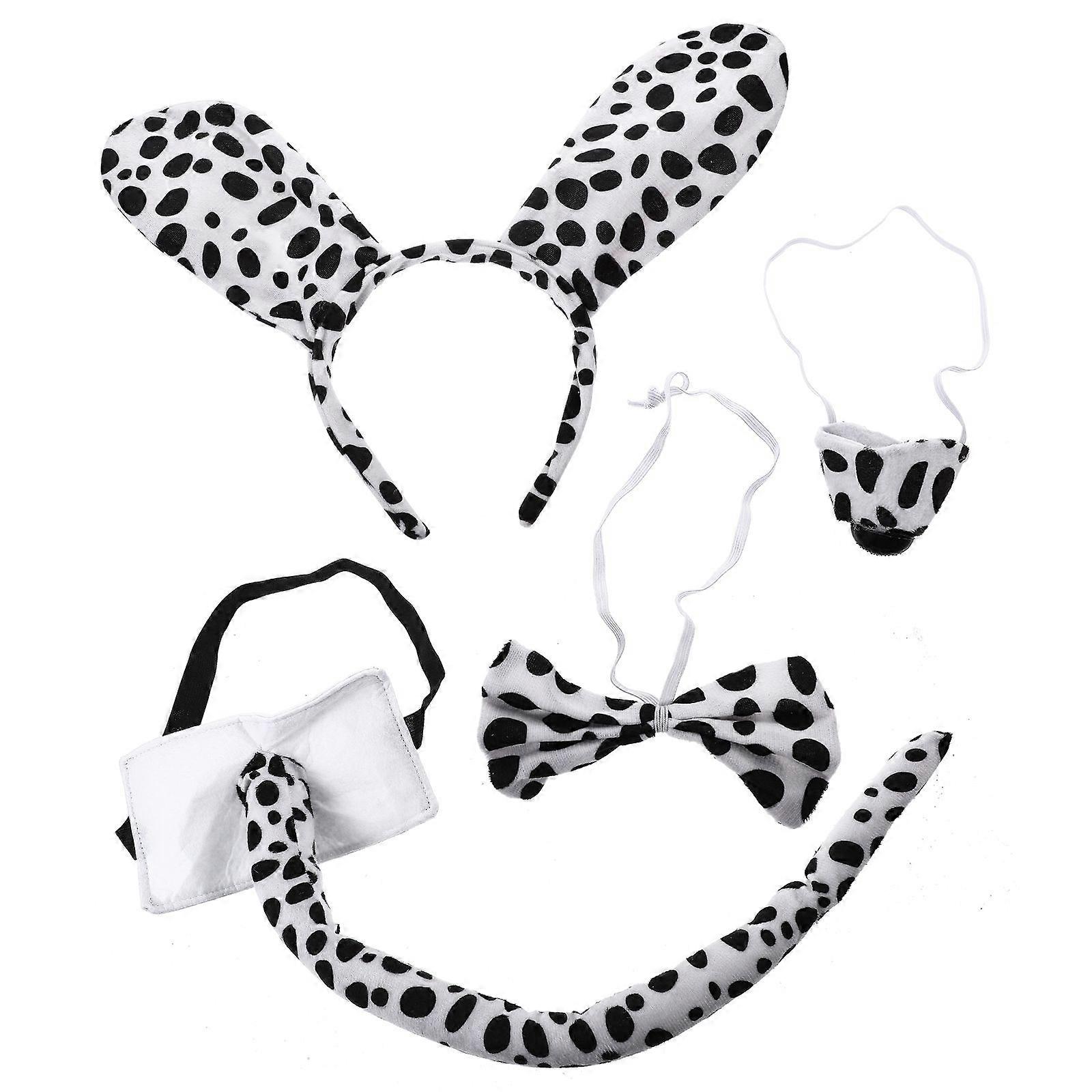1 Set Animal Ear Headband Cosplay Spotted Dog Costume Tail Prop Bowtie Fake Nose Decor