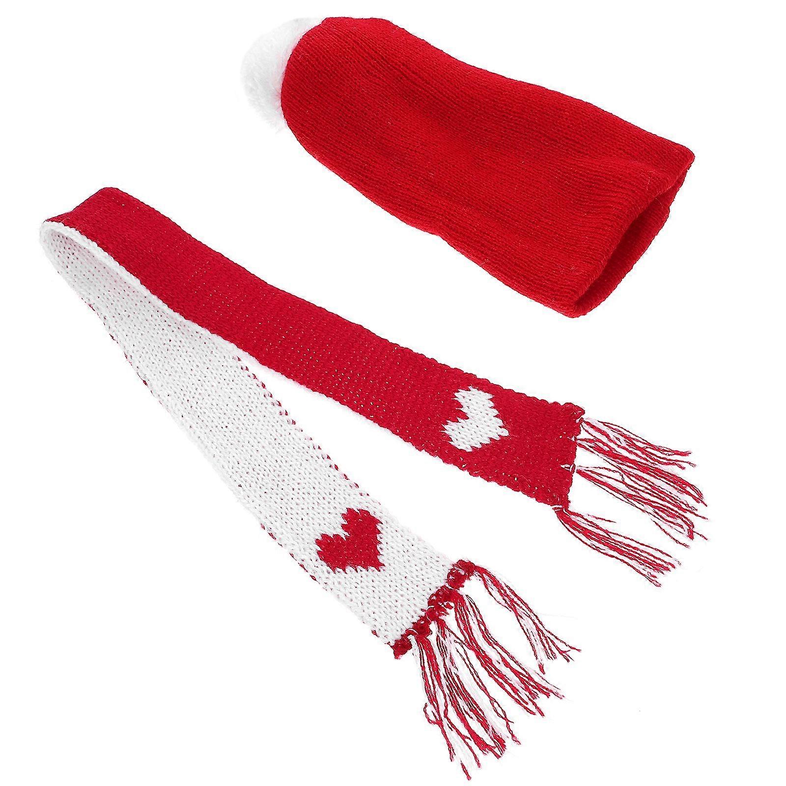 1 set of Doll Decorative Scarf Hat Xmas Element Small Scarf Miniature Knitted Hat