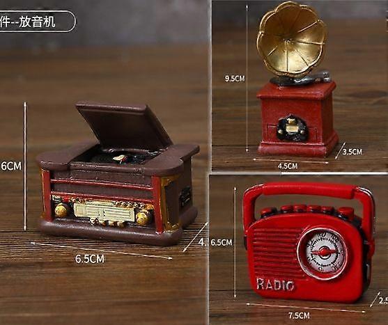 1 Set Mini Phonograph Decor: Miniature Retro Phonograph Resin Ornament - Vintage Record Player and Radio Model for Home Decor Table Decorations and Do