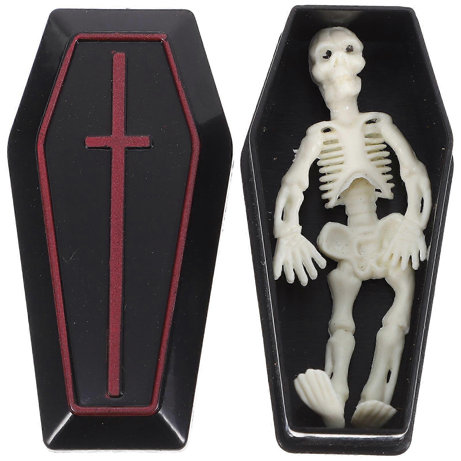 1 Set Mini Coffin with Skeleton Halloween Decoration Funny Prank Props Creative Tabletop Decor for Halloween Parties Stage Props