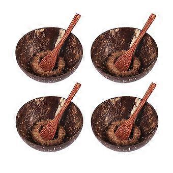 1 Set of Natural Coconut Shell Bowls with Spoon and Stand Suitable for Ice Cream, Desserts, Rice, Snacks, Nuts