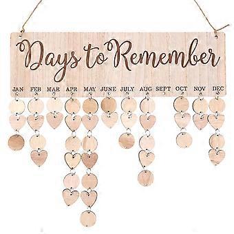 1 Set Family Birthday Calendar Board DIY Wood Calendar Wall Hanging Decoration Birthday Anniversary Reminder Plaque