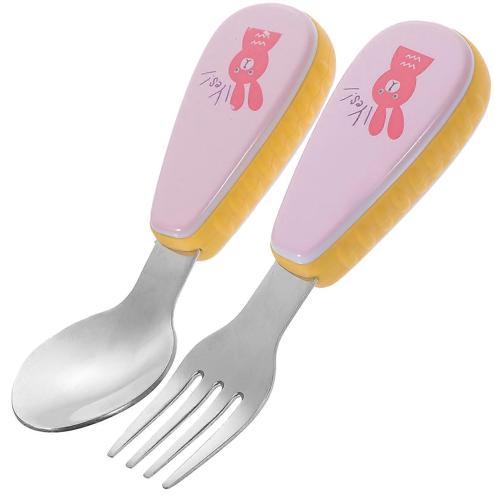1 Set Children Fork Spoon Kids Stainless Steel Fork Spoon Kids Flatware with Box