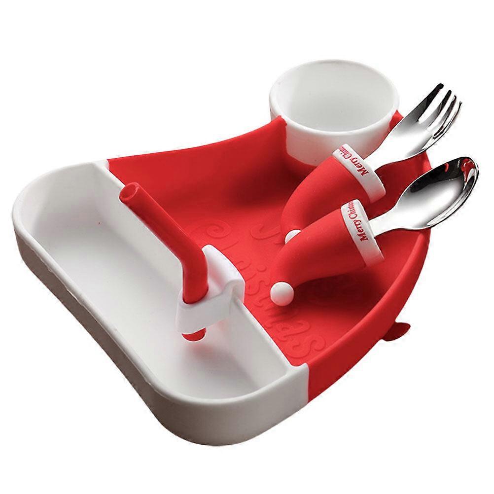 1 Set of Silicone Santa Hat Shape Plate for Toddlers with Fork and Spoon Divided Dinner Plate