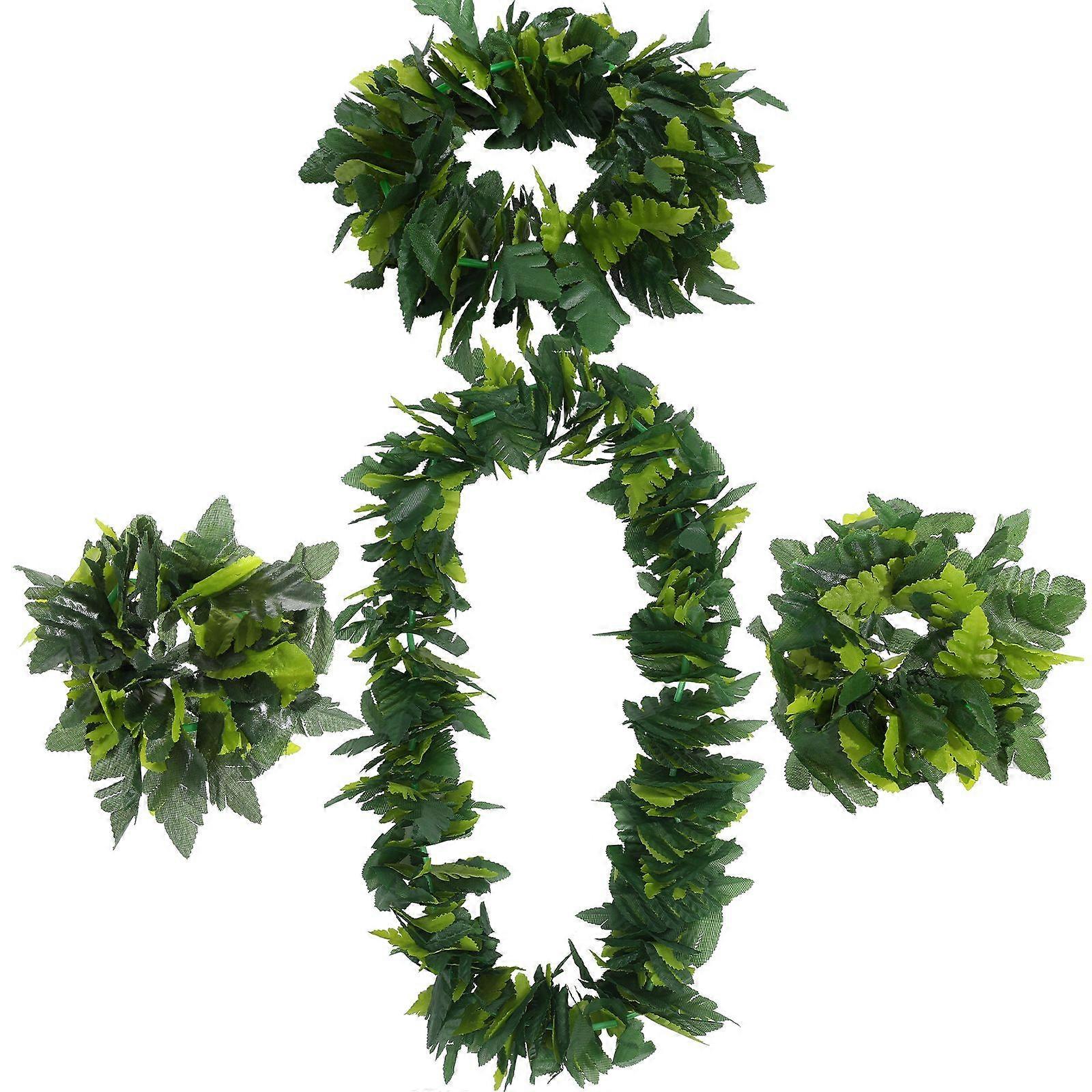 1 Set Green Hawaiian Party Garland Artificial Leaves Headband Lifelike Leaves Necklace Loop Bracelet for Tropical Beach Luau Party