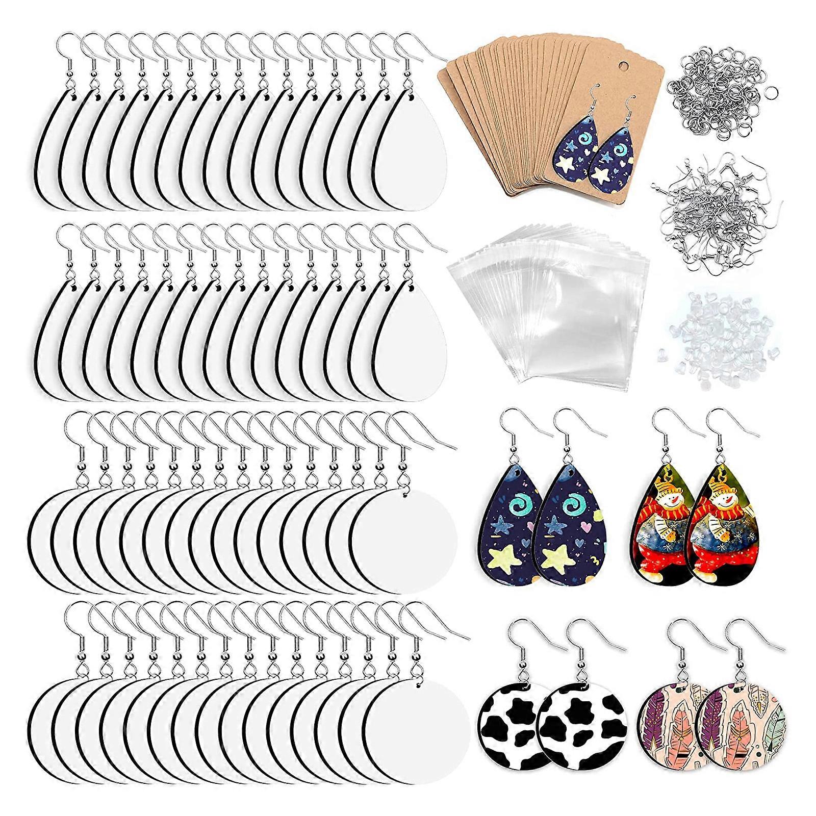 1 Set Sublimation Earring Blanks Products Thermal Transfer Earrings Kit with Earring Hooks Jump Rings Self-sealing Bags