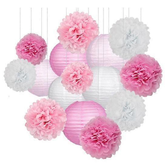 List: Paper Lanterns: 1 10-inch White, 1 10-inch Light Pink, 10-inch Pink, 8-inch White, 8-inch Light Pink, 8-inch Pink