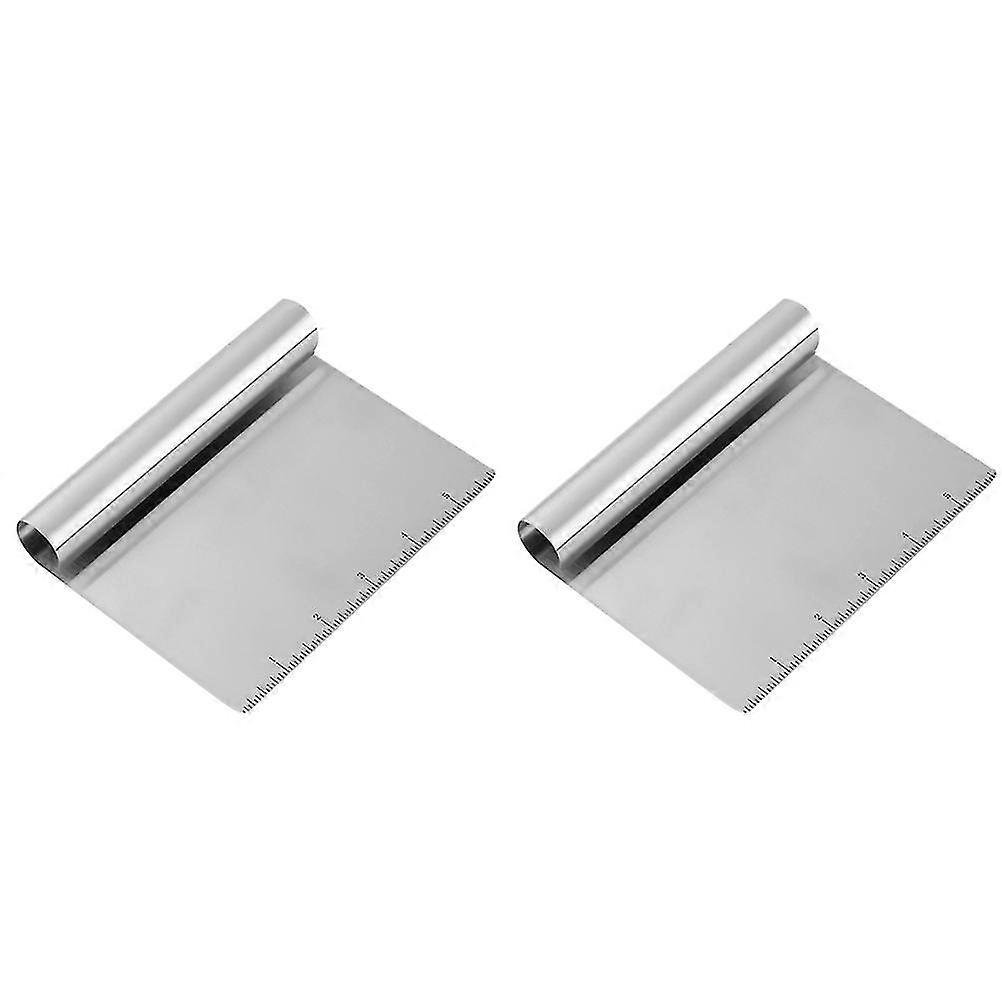 1 Set 2pcs Bakeware Dough Cutter Stainless Steel Scraper Chopper With Scale For Flour Pastry Pizza (sliver)