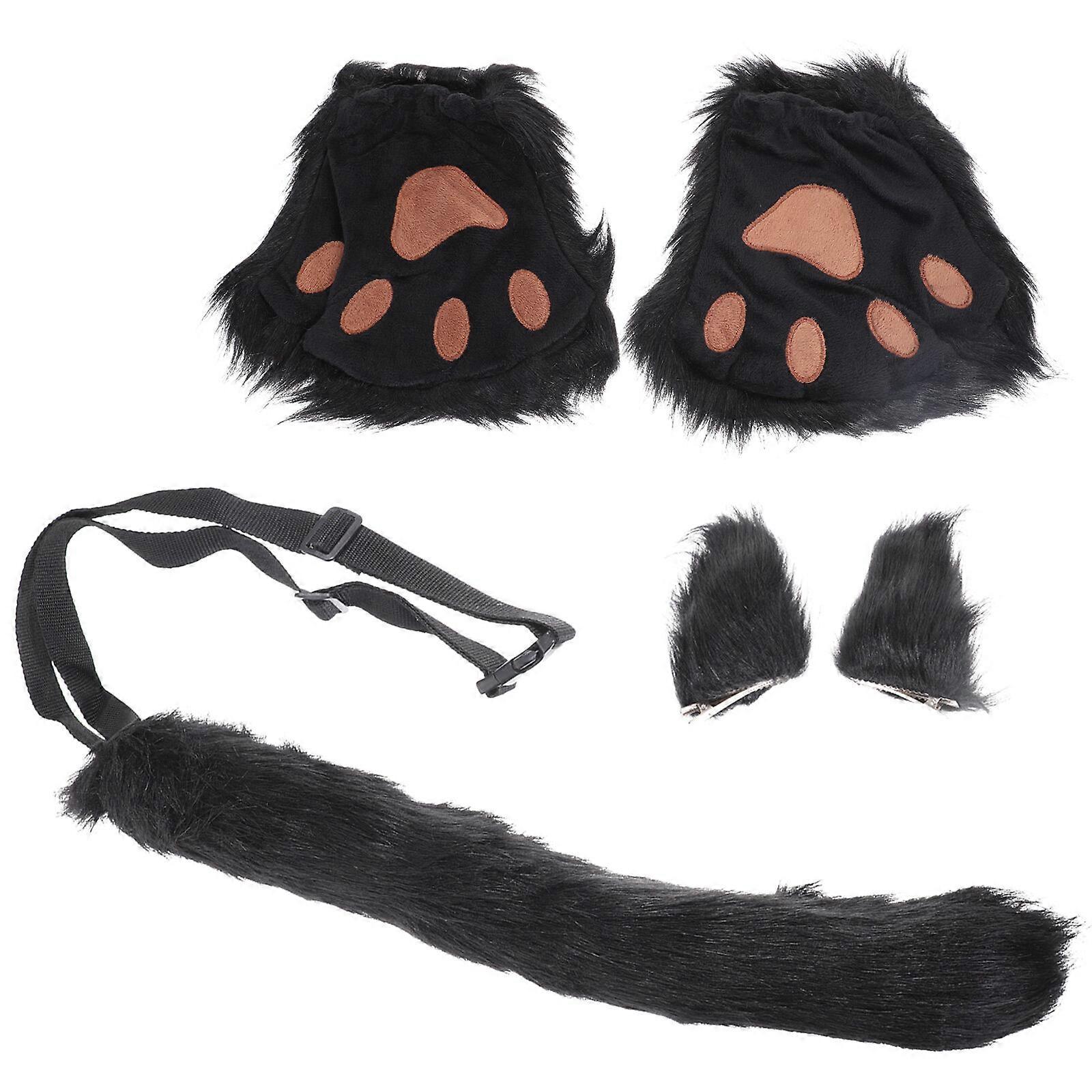 1 Set Cosplay Ears Hairpins Tail Gloves Halloween Costume Accessories Party Prop