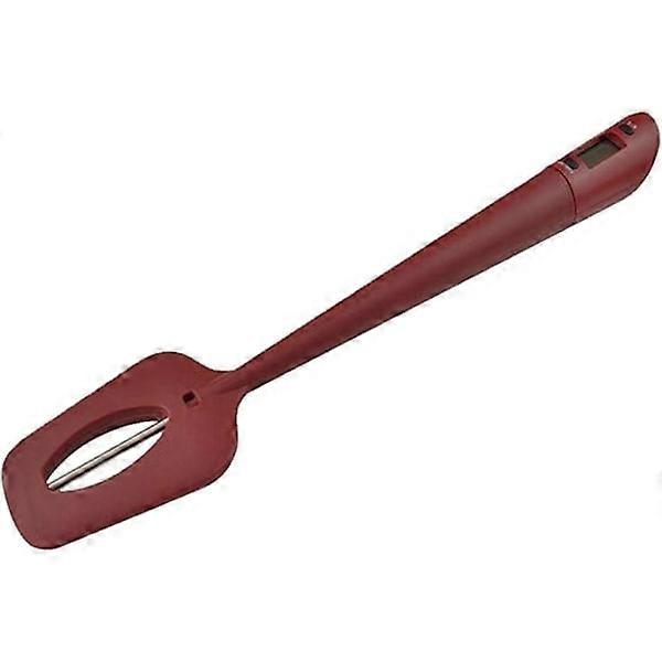 1pc Coffee Thermometer and Stirrer, Candy Scraper Thermometer, Silicone Scraper with Electronic Digital Probe Thermometer, Quick Read Scraper Thermometer Scraper Welcome to our store. Safe Use Temperature Range: -50℃~300℃/ -58℉~572℉ Application: This product is widely used for temperature measurement of solid, liquid, granular objects, such as coffee, milk, BBQ roast, etc. Accuracy: ±1℃/1.8℉, Dimensions: 30X310mm, Temperature Sensor Tube Length: Φ3.8X70mm. Material: silicone, plastic, 304 stainless steel probe. Power Source: LR44 battery x 1. The battery is replaceable. No operation for 40 minutes automatic power off function, suitable for use in all stoves without risk of damage, removable thermometer probe made of food grade stainless steel; no operation for 40 minutes will automatically power off. Easy-to-read digital display: Since the digital display is located on the handle, you can keep an eye on the temperature while stirring and get a clear temperature reading while you are actually stirring the ingredients. Features: It combines a spatula and a thermometer to make it easier to stir sauces while doing the spoon test. Convenient design: Food-grade silicone paddle and removable stainless steel probe - the probe can be removed from the spatula and used as a meat thermometer for grilling.