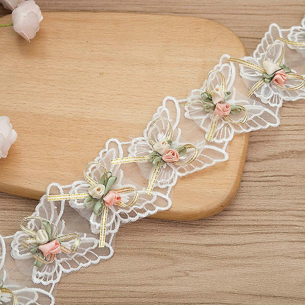 1 Yard Rose Flower Embroidery Lace Trim Ribbon Pearl Beaded DIY Sewing Applique E