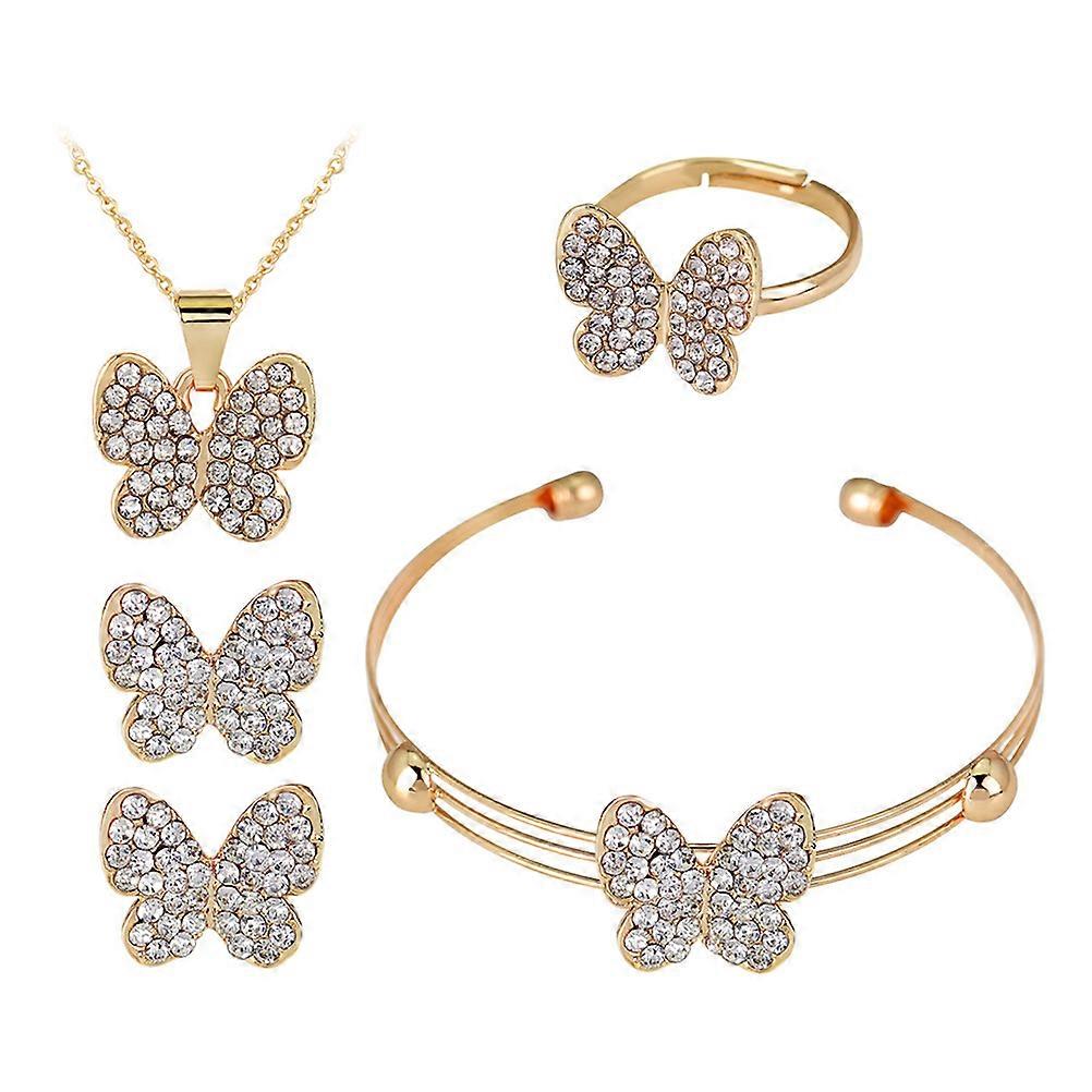 1 Set Butterflies Jewelry Pendant Necklace Bangle Stud Earrings Ring for Women